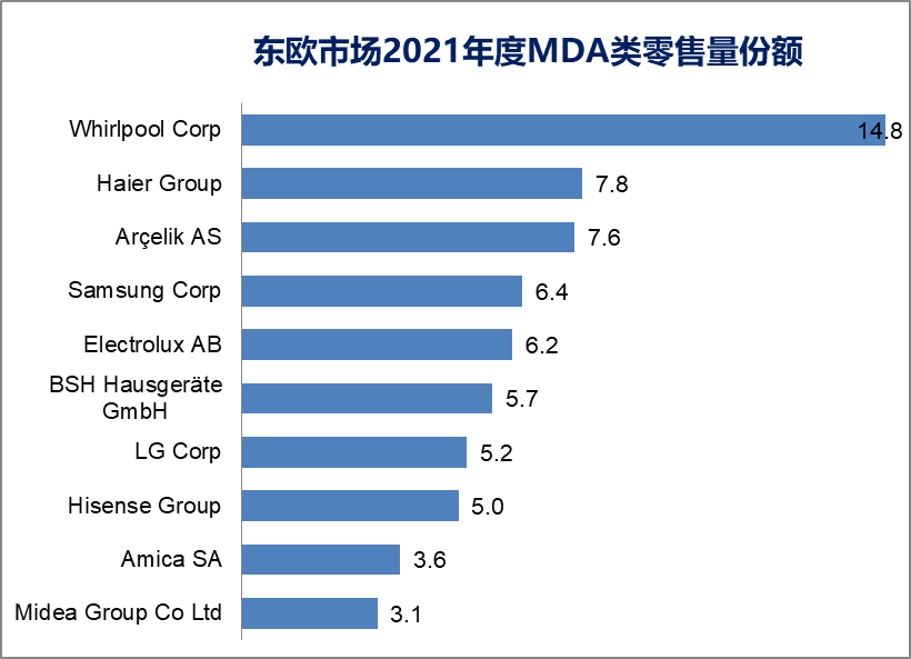 (圖2:東歐市場2021年度大型家用電器零售量市場份額,歐睿國際)