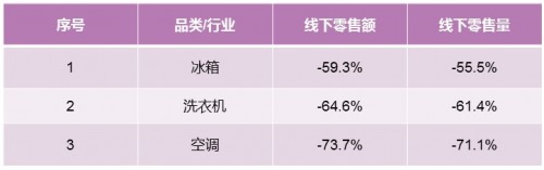 經(jīng)歷了長時間的疫情防控,用戶健康生活意識逐漸增強,對除菌和健康類家電的需求與日俱增。但在需求換擋面前,行業(yè)并沒有完全做好準備,中怡康第20周數(shù)據(jù)顯示,“五一”期間短暫回暖的家電市場,再次出現(xiàn)量額雙降。其中,冰箱線下零售額同比下滑59.3%,零售量同比下滑55.5%;洗衣機線下額、量同比下滑64.6%、61.4%;空調(diào)線下額、量同比下滑73.7%、71.1%。。