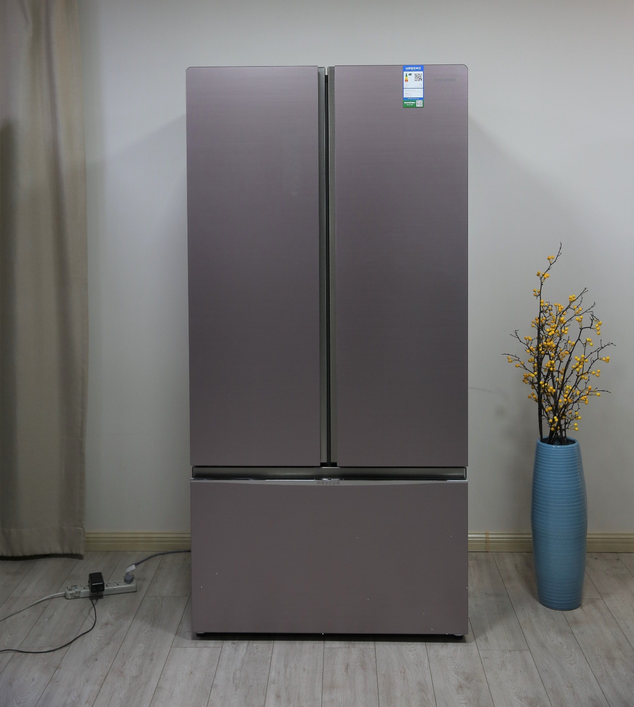 這款冰箱采用了中式多門的設計,左上側室冷凍室,右上側是冷藏室,下邊還有一個大的變溫室。