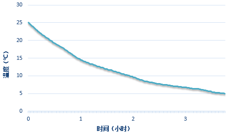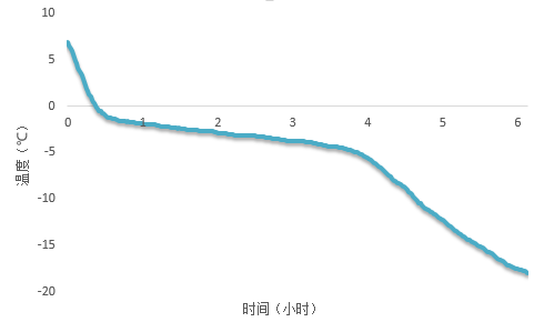 冰箱的性能比起外觀更加重要,制冷速度正是評價它的重要維度之一。我們把冰箱冷藏室設置為速冷模式,將一瓶25℃的礦泉水放進冰箱,在水中放置測溫點,記錄水溫降至5℃所用時間。最終用時3小時45分鐘,平均每小時降溫約5.3℃,在同級別冰箱里,制冷速度相當出色。