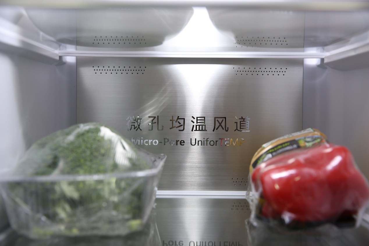 在送風方式上,采用了微孔均溫風道技術,讓間室溫度更均勻,精準控溫,長久新鮮。