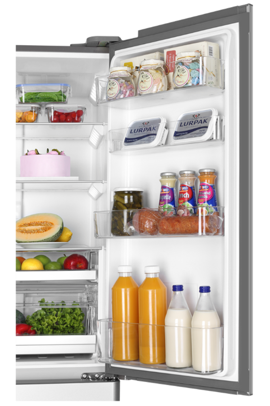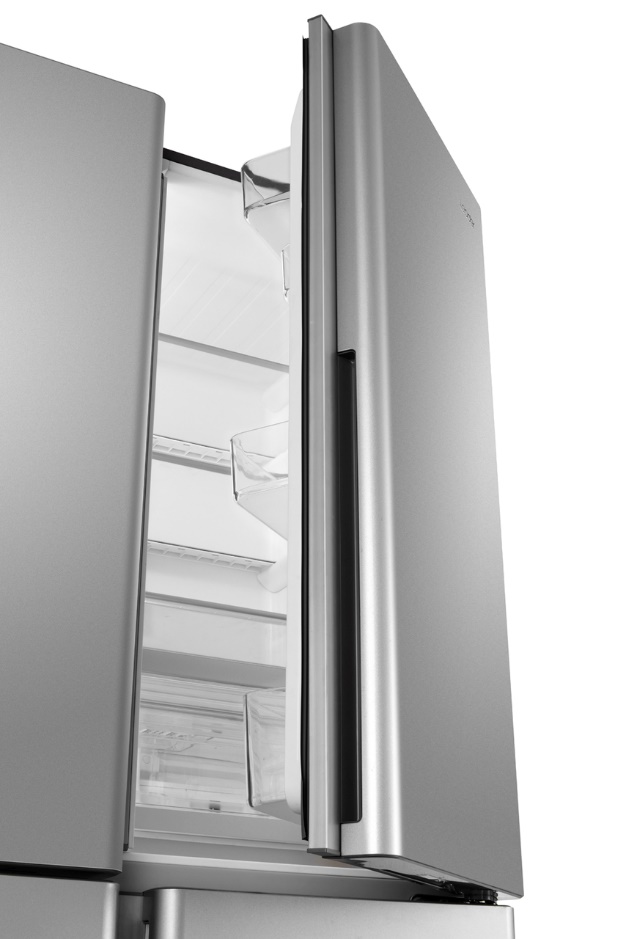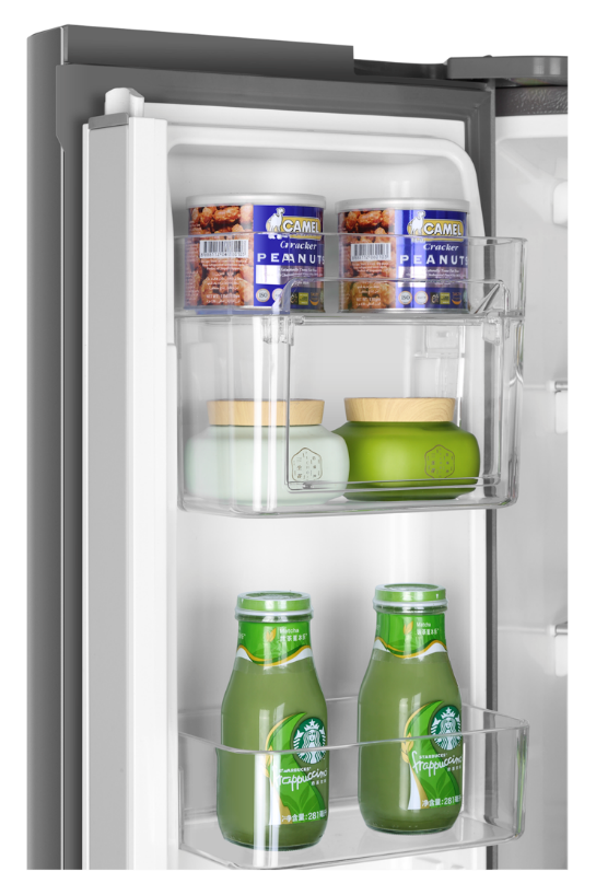 R28的人體工學圓角門體設計對相關折彎成型工藝與把手處柔性材料處理對制造工藝挑戰非常高。同時這款冰箱采用的薄型設計,使用戶在廚房活動時,獲得更多活動空間,同時更好拿取冰箱擱物架頂層的食物,食物收納一目了然,避免食物遺忘造成浪費。