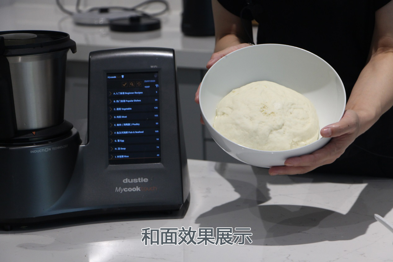 達酷客智能料理鍋可以兼顧揉面和蒸的兩種功能,和面其實是一個簡單粗暴的活,想要面活的好,最重要在于揉捏和醒發的過程,適量的食鹽增加筋性,一點點白糖讓面醒發更快。
