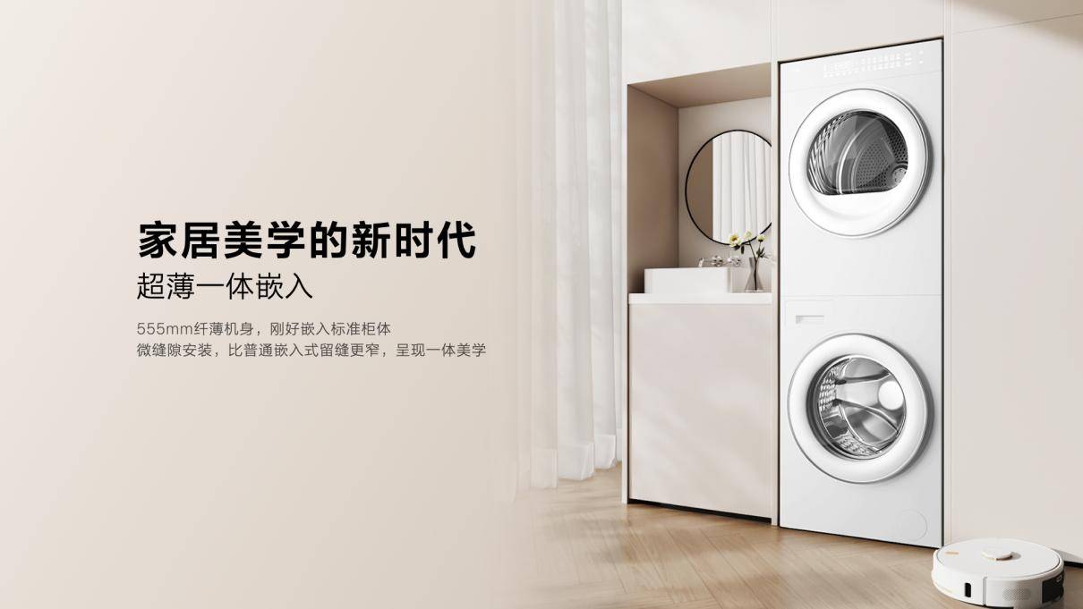 首先,雙子艙 T10 洗衣機實現了設計一體化,輕松滿足用戶家居場景嵌入安裝的使用需求。555mm的纖薄機身,輔以“一個電源、一個進水口、一個排水口、無排水盒”的集成化水電設計方案,被譽為是市面上最容易嵌入的洗烘產品。在家居場景下,無論置放于陽臺柜,還是廚房、洗衣房等不同場景,都可輕松融入整體空間。