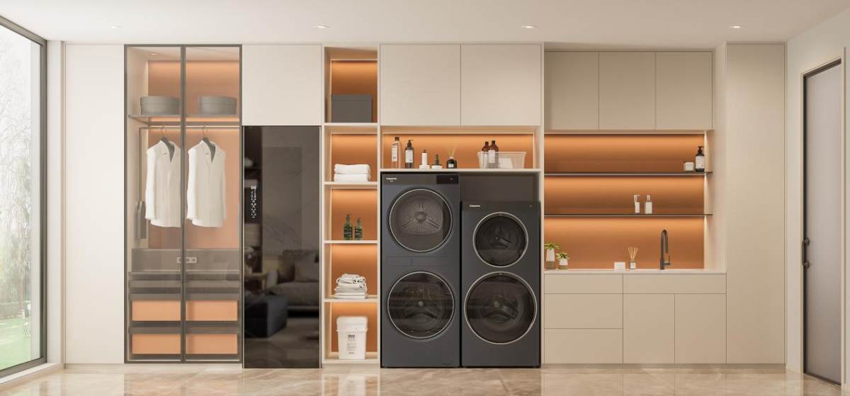 為了進一步提升家居家電的風格融入,越來越多家庭選擇將洗衣機、干衣機等嵌入櫥柜使用。不過機身兩側的預留縫隙、正面外凸的筒門、把手,都需要額外的空間余量,對家居空間不夠友好。
