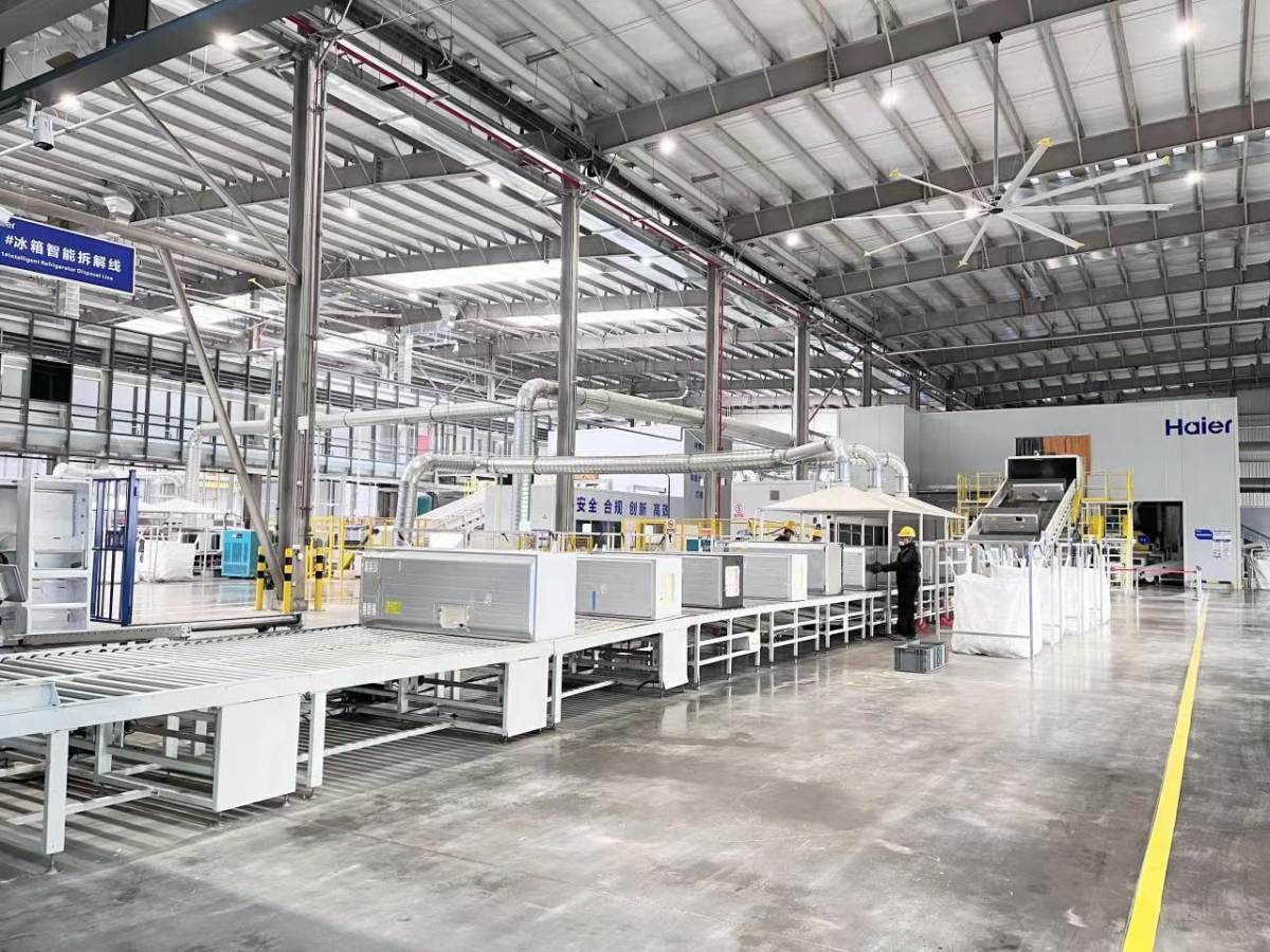 在產業綠色化上,海爾智家在青島萊西打造了行業首座融合“回收-拆解-再生-再制造”為一體的再循環互聯工廠。從全國各地回收的家電,在這里通過全流程可視化、規范化的精細拆解、破碎清洗、塑料造粒,最終生成高品質的循環新材料。而這些再生材料純度高達99%,純度行業最高,堪比原生材料,可用于家電、汽車、日化,甚至食品級塑料等領域。目前,該工廠每年可實現廢舊家電拆解200萬臺,循環材料再生3萬噸。