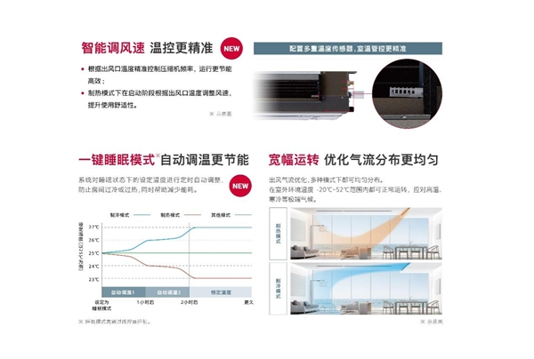 根據(jù)出風口溫度精準控制壓縮機頻率,運行更節(jié)能高效; 制熱模式下在啟動階段根據(jù)出風口溫度調(diào)整風速,提升使用舒適性。