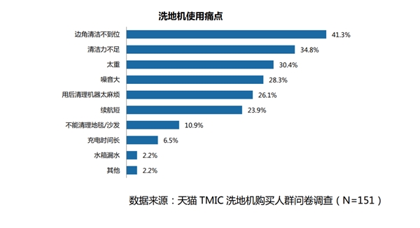 《2023中國洗地機(jī)行業(yè)發(fā)展與消費洞察白皮書》顯示,洗地機(jī)已購用戶在使用產(chǎn)品時還有許多痛點尚未解決,其中對邊角清潔不到位的呼聲最高,占到41.3%。當(dāng)號稱能“躺平”的洗地機(jī)“卷”起來后,消費者卻發(fā)現(xiàn)更多的問題接踵而至。例如機(jī)身笨重、扭轉(zhuǎn)費力、污水桶容量小導(dǎo)致續(xù)航短以及吸力下降、風(fēng)道堵塞、機(jī)身厚導(dǎo)致無法深入死角等,種種問題成為消費者投訴的焦點。
