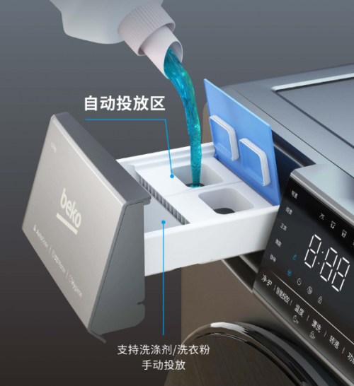 洗衣粉還是洗衣液?柔順劑加多少,放在哪個步驟?不小心加多了怎么辦?洗衣機本是讓生活更加輕松便利的,卻往往一開始就在這些細節處令人難以下手。Beko倍科至愛12KG洗衣機,配備自動雙投放功能,支持洗滌劑、柔順劑的雙投放,機器自動檢測、按照合適順序分別投放適量的洗滌劑(≥650ml)、柔順劑(≥350ml),一次添加,多次使用,同時避免泡沫和化學殘留,更加健康環保。對于不習慣自動投放的人群,也特意設置了洗滌劑/洗衣粉的手動投放區,家中小孩、老人也可輕松使用。