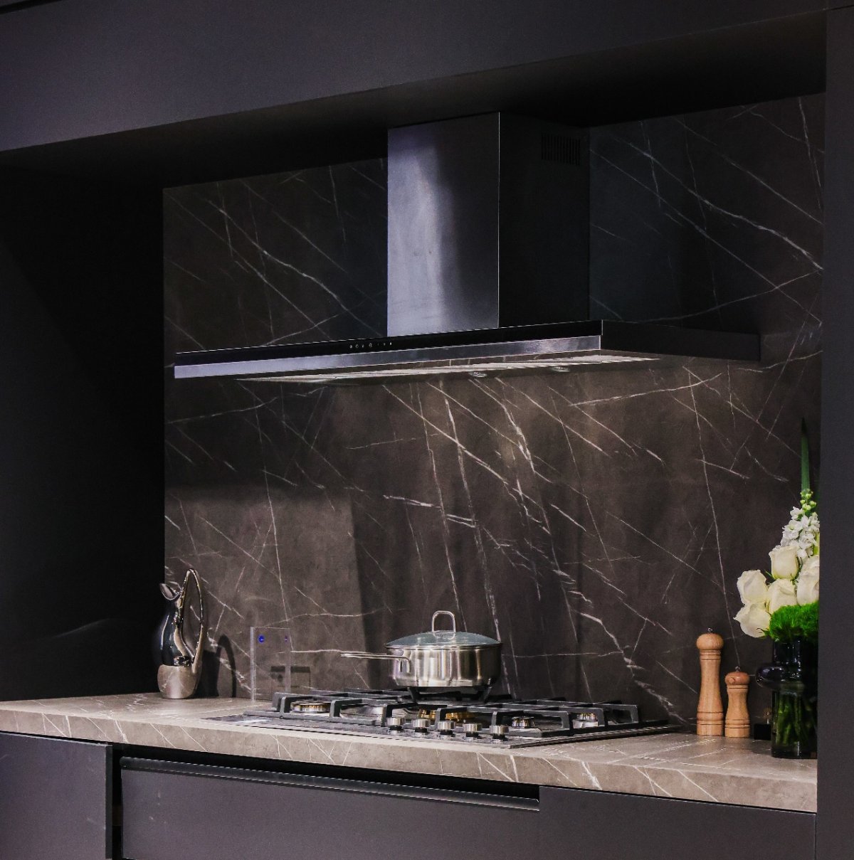 首先是家電與櫥柜的適配融合。在成都奢適館內(nèi),展示了兩套黑灰色系的現(xiàn)代風(fēng)和當(dāng)代風(fēng)社交廚房場(chǎng)景,隱形全嵌技術(shù)將廚電與柜體之間的縫隙縮小至3mm,在行業(yè)內(nèi)是首屈一指的;且冰箱、灶具擁有多種規(guī)格尺寸,可滿足不同廚房大小及格局設(shè)計(jì)的使用需求,堪稱“完美嵌入大師”。