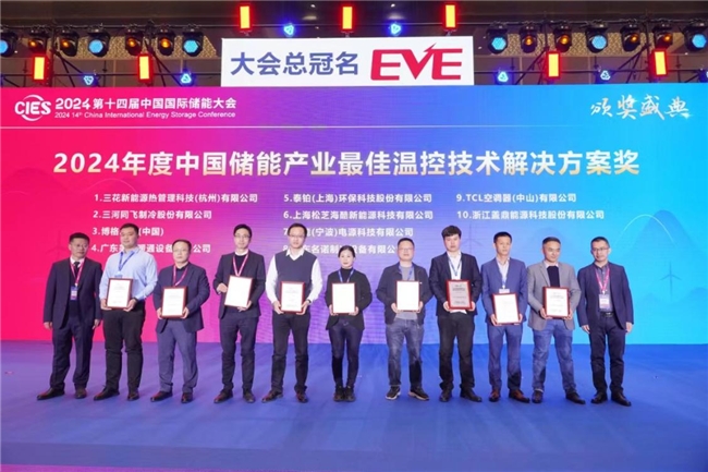 憑借強大的技術、產品及解決方案,在2024年度中國儲能產業最具影響力系列獎項頒獎盛典上,TCL空調斬獲2024年度中國儲能產業最佳溫控技術解決方案獎。