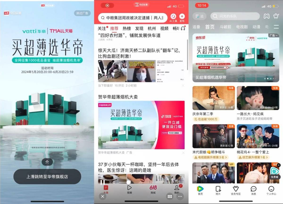 為了進一步提升華帝超薄油煙機的市場熱度,華帝還針對潛在目標消費者的碎片化線上娛樂場景,將品牌信息精準地融入用戶日常瀏覽的資訊流中,特別是在今日頭條、騰訊視頻等主流且用戶活躍度高的信息平臺上,進行了針對性的信息流廣告投放。