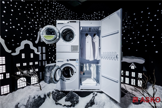 最具代表性的ASKO ProHome?洗衣房,從用戶健康和家裝一體化的設計風格考慮,對產品組合進行全方位的優化和升級,僅0.72㎡的空間可實現從衣物清洗、烘干消毒、熨燙護理到整理疊放的一站式洗護體驗,獨有的無膠圈金屬門封,可從源頭避免細菌滋生。其中,ASKO洗衣機還榮獲北歐白天鵝環保標簽認證和挪威、瑞典防哮喘過敏協會推薦。