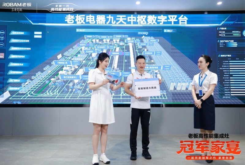 剛化身老板集成灶“超級體驗官”,楊威便直奔老板電器的無人智能制造基地,開啟了冠軍品質(zhì)的探索之旅。