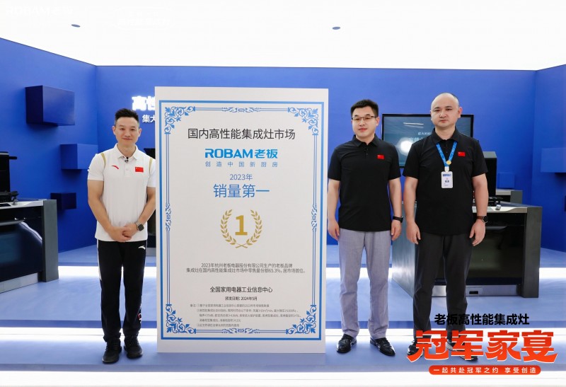 根據(jù)中國家用電器研究院數(shù)據(jù)監(jiān)測,在高性能集成灶領(lǐng)域,老板集成灶2023年獲得了終端銷售市場65.3%的零售量份額,市場地位顯著領(lǐng)先于行業(yè),活動現(xiàn)場,全國家用電器工業(yè)信息中心研究部主任宋敬學(xué)為老板高性能集成灶頒發(fā)灶銷量第一證書。