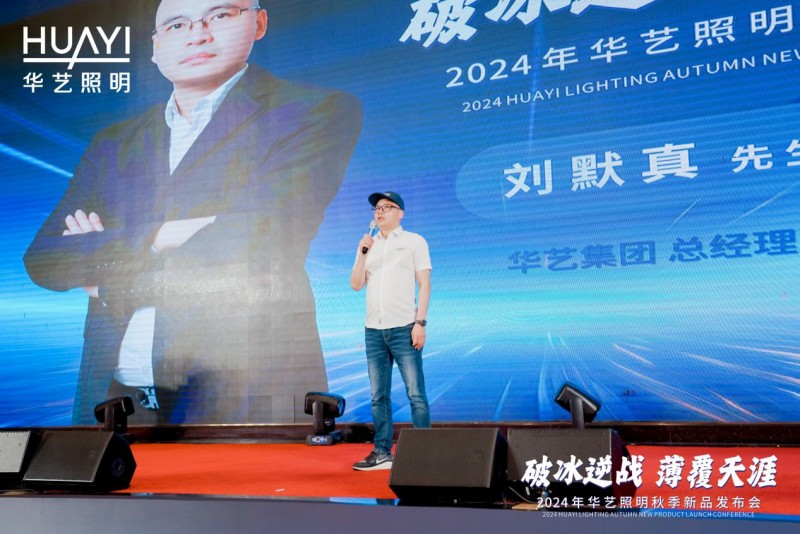 隨后,華藝集團總經理劉默真上臺致辭,他向現場的合作伙伴解讀了本次活動的主題,“破冰逆戰,薄覆天涯”蘊含了華藝照明堅定無畏,敢于挑戰的精神。對未來,華藝照明始終充滿信心,面對新的機遇,華藝照明會與各位合作伙伴一起闊步前行,越戰越勇,越來越好!