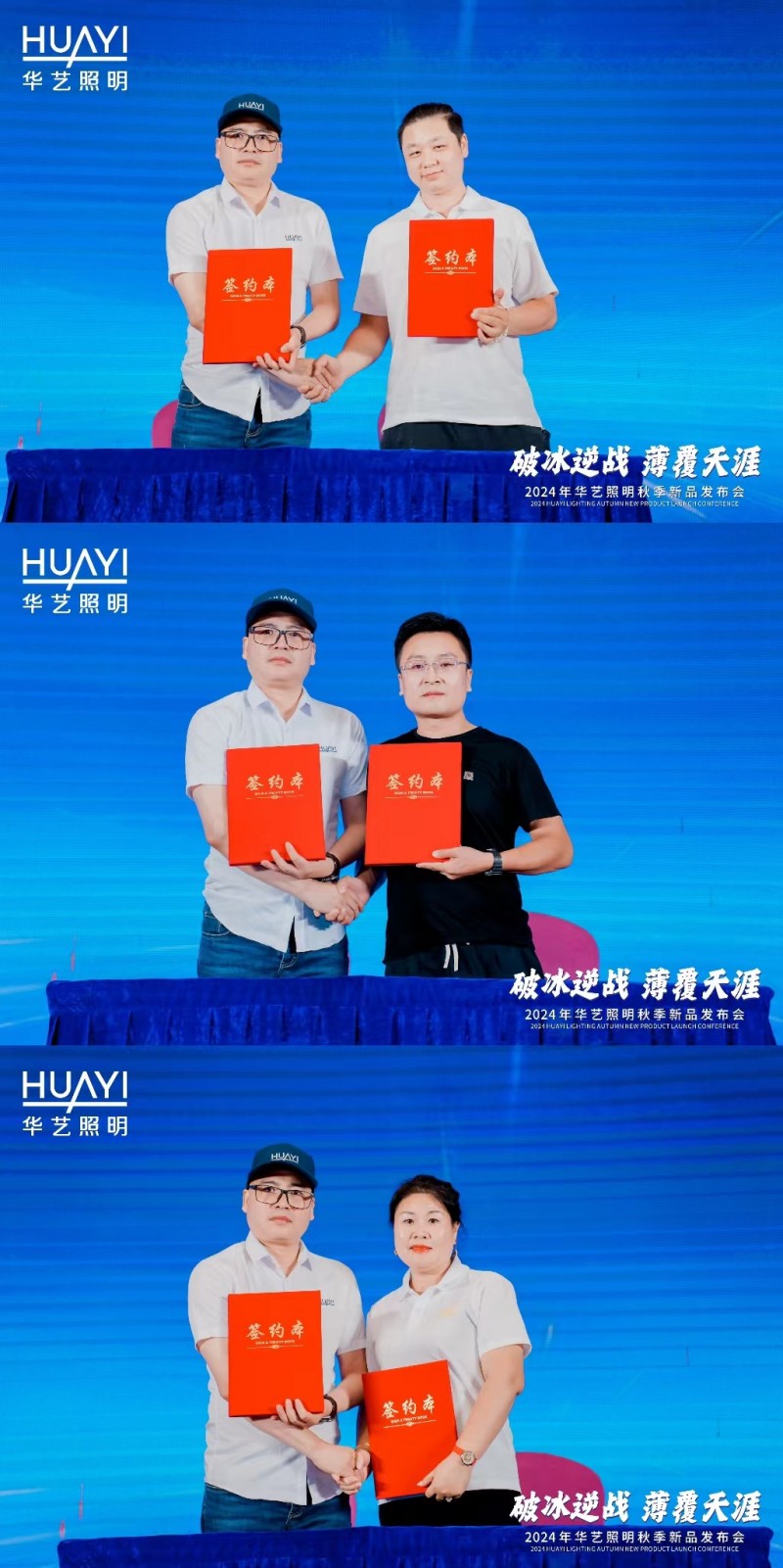 隨后,現場進行了加盟簽約授牌儀式,華藝照明與多位經銷商鄭重簽下合作協議,并進行授牌儀式,這充分體現經銷商對華藝照明品牌信賴,也體現市場對華藝照明產品的認可。