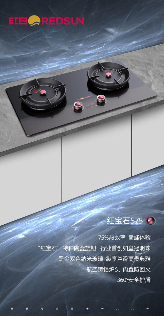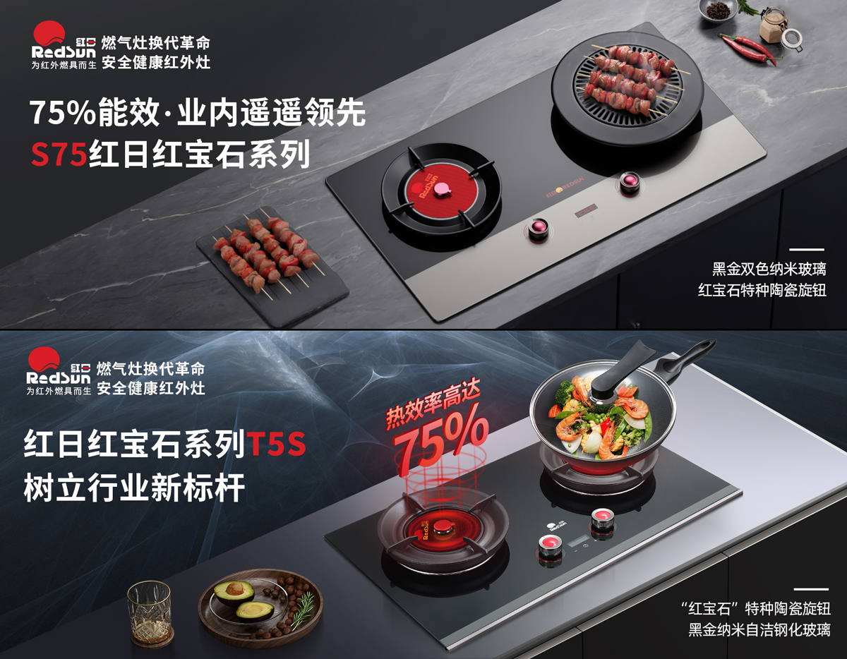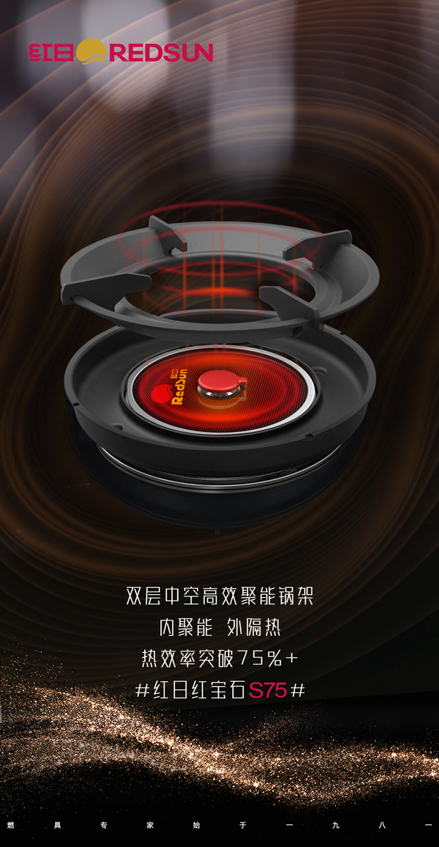 紅日紅外灶旗下熱銷爆款——紅寶石S75與T5S系列,可謂當下高效節能的標桿性產品。兩款紅外灶均搭載了紅日首創的“雙層中空高效分體聚能鍋架設計”,內聚能、外隔熱,讓專利紅外線節能燃燒技術得到充分發揮,熱量瞬間轉化為紅外線光波,熱效率輕松突破75%,遠超國家一級能效標準,超高熱效率,燃燒更充分,節能更環保。