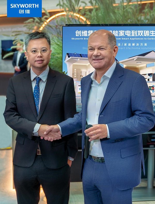 開幕式結(jié)束后,德國總理朔爾茨先生一行親臨創(chuàng)維展臺。在創(chuàng)維集團董事會主席林勁先生、創(chuàng)維旗下德國 METZ 電視 CEO 科茨鮑爾博士的陪同下,德國總理朔爾茨先生參訪了創(chuàng)維集團 IFA 展區(qū)。深入了解了創(chuàng)維「從智能家電到雙碳生態(tài)」的產(chǎn)業(yè)布局與發(fā)展狀況,還親身體驗了最新的創(chuàng)維系智能家電產(chǎn)品。他對創(chuàng)維的新能源光伏+儲能業(yè)務(wù)和高端 METZ 電視產(chǎn)品表現(xiàn)出了濃厚的興趣,并且為「METZ 德國造」親筆簽名。