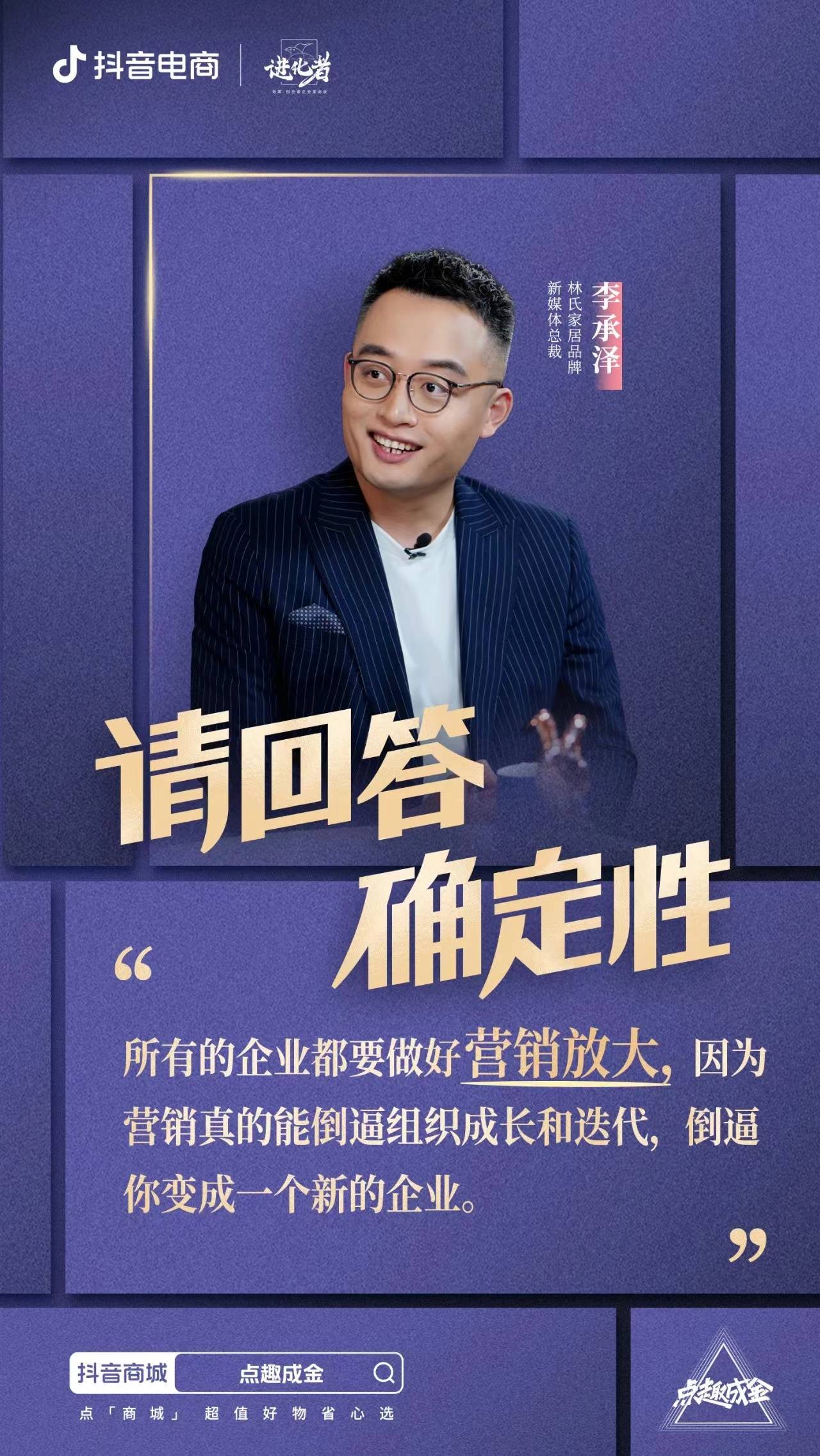 林氏家居品牌新媒體總裁李承澤認為,成功的營銷能夠帶來人群資產的沉淀,而優質豐厚的人群資產正是對未來不焦慮的底氣所在。在抖音電商,人群資產不是買來的,是用戶看到品牌優質內容自發轉化的,是差異化營銷帶來的結果。