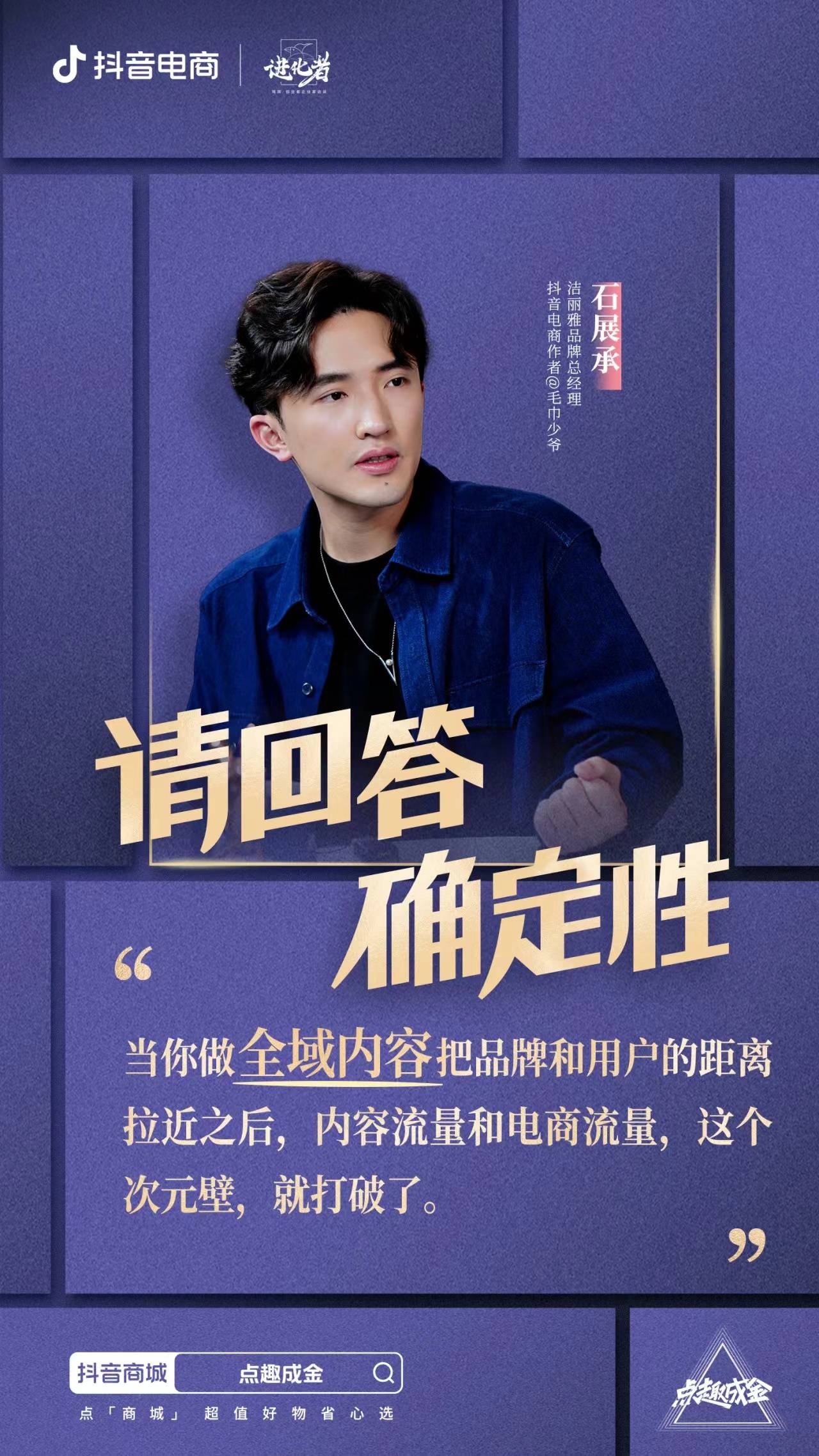 潔麗雅品牌總經理石展承表示,在抖音這樣一個內容平臺,品牌首先要輸出讓用戶感到愉悅的內容,同時也要像朋友一樣友好地交流溝通,拉近彼此之間的距離,才能更自然地打破內容流量和電商流量之間的“次元壁”。