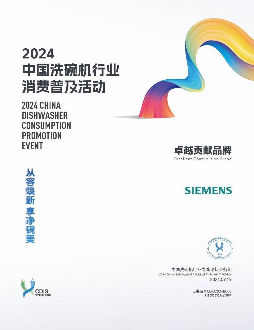 在此次活動中,西門子家電憑借在技術創新、高端產品提供和優質體驗方面的不懈努力,以及對洗碗機在中國市場普及的積極推進,榮獲“2024中國洗碗機行業消費普及活動‘卓越貢獻品牌’”稱號。