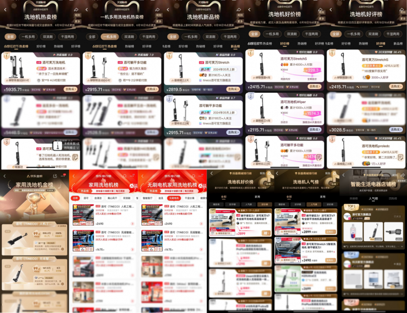 2024年,同樣是添可飛速成長(zhǎng)的一年。在今年的618全周期,添可洗地機(jī)在天貓、京東、抖音等平臺(tái)銷量/銷額均穩(wěn)居首位,斬獲十余個(gè)平臺(tái)榜單TOP1,市場(chǎng)份額遙遙領(lǐng)先,銷額同比去年勁增26%。其中,芙萬(wàn)Stretch系列憑借13cm的纖薄機(jī)身成為躺平款洗地機(jī)標(biāo)桿產(chǎn)品,更憑借對(duì)消費(fèi)者多元需求的滿足而廣受好評(píng),成為多個(gè)熱門榜單榜首。