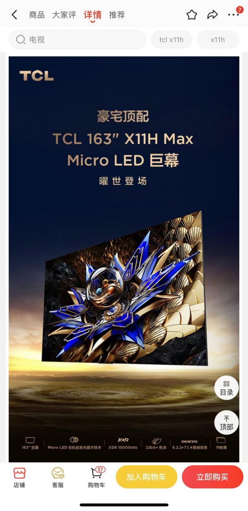從搜索的資料了解到,TCL這款163英寸Micro LED電視X11H Max目前世界上最大的Micro LED電視,在今年的CES國際展會上憑借驚人的尺寸碾壓了三星,并且TCL可以說是“巨幕專業戶”,早在2023年就推出了全球最大的QD-Mini LED電視足足有115吋,作為一個影視愛好者,必須是深知用大屏追劇有多爽,看到TCL這樣的國產電視品牌已經做到了領先全球,不禁讓人心生自豪。希望未來也能有更多好產品造福廣大影視愛好者吧。