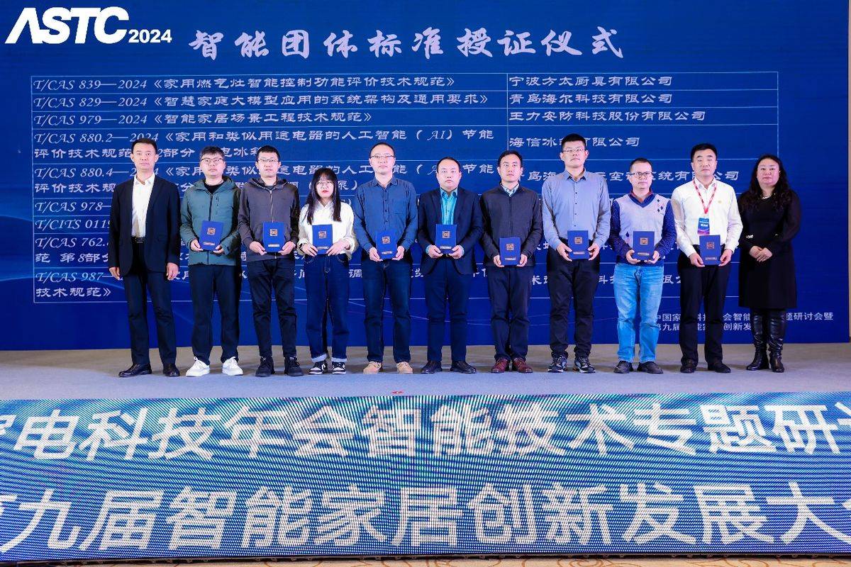 近年來,智能家居技術(shù)已經(jīng)開始向低碳節(jié)能、場景服務(wù)、性能融合等多個方向發(fā)展,而仍然存在標準體系完善度不高,技術(shù)積累欠缺等問題。今年,在中國標準化協(xié)會的指導(dǎo)下,中國家用電器研究院、中家院(北京)檢測認證有限公司牽頭制定了多項智能家居團體標準,涉及方向包括智能控制功能評價、大模型應(yīng)用、場景應(yīng)用、人工智能節(jié)能、近場通信、主動智能水平、語音交互、算法等,此次大會上,寧波方太廚具有限公司、青島海爾科技有限公司、王力安防科技股份有限公司、海信冰箱有限公司、青島海信日立空調(diào)系統(tǒng)有限公司、浙江蘇泊爾股份有限公司、廣東美的制冷設(shè)備有限公司、廣東好太太科技集團股份有限公司、小米武漢(科技)有限公司等(以上排位不分先后)牽頭單位獲得了團體標準證書。