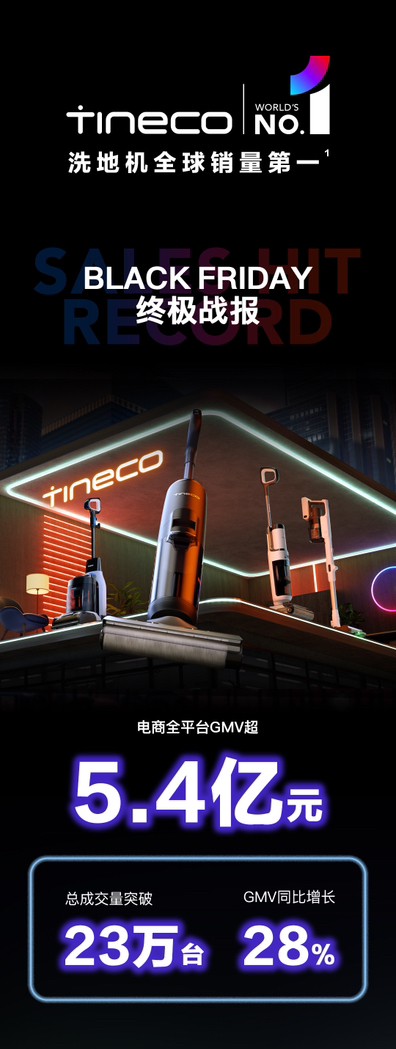 在全球市場上,添可也不負眾望,取得了驕人的戰績。2024年“黑五”,添可電商全平臺GMV超過5.4億元,總成交量突破23萬臺。同時,添可再次突破自我,GMV實現了28%的增長,領漲洗地機國際大盤,添可洗地機在美、法、德、加、意等9大國家站點中繼續穩居市占第一。據歐睿國際調研數據,按全球2023年下半年及2024年上半年零售渠道各品牌家用洗地機銷售量(萬臺)計算,添可洗地機銷量全球第一。