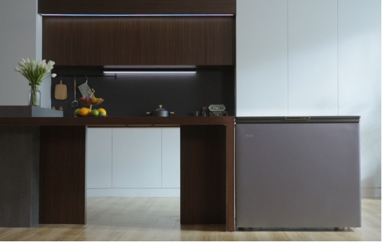 與時俱進,還體現在持續拓寬的儲鮮場景上。在家庭場景中,海爾冷柜從廚房擴展到客廳、餐廳、儲藏室等全屋場景,布局了領鮮系列無霜臥式柜、至味系列深冷鮮凍立式柜、元氣吧、酒柜等全矩陣產品。在商用場景中,海爾冷柜開拓出農貿生鮮、餐飲后廚、商超便利、特色經濟等全場景,給出了面面俱到的個性化儲鮮方案。拿餐飲后廚場景來說,推出全系列廚房冰箱、冰鑒系列制冰機、商用展示柜等全矩陣產品,滿足了餐廳、酒店、飲品店、酒吧、冰激凌店等各類門店的制冷保鮮需求,從夫妻小店到五星酒店都有貼心方案。