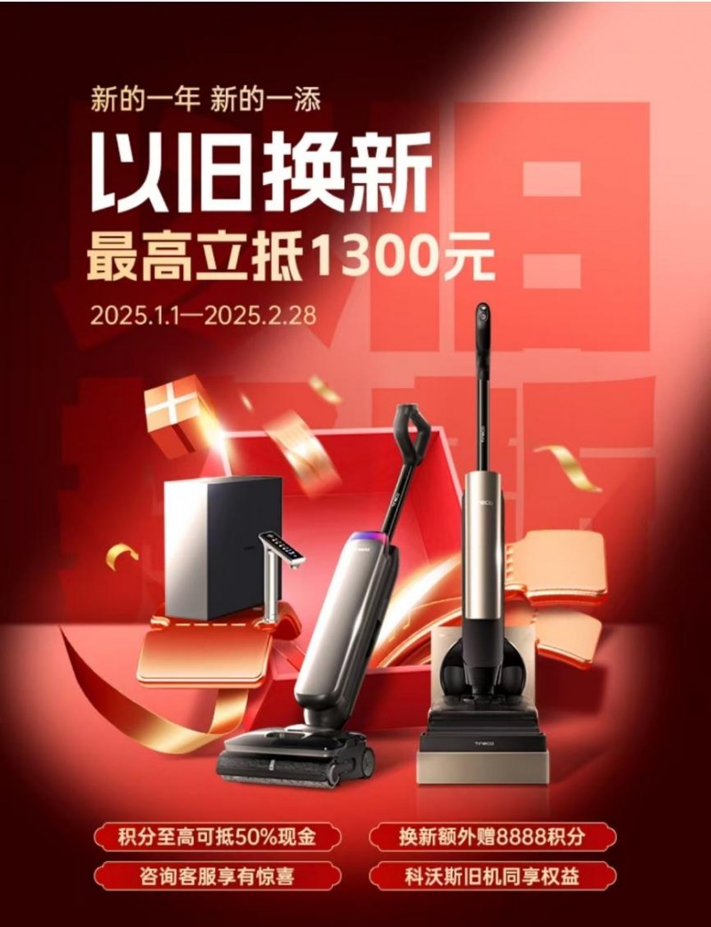 在添可官方商城上,添可以舊換新活動如期而至,每一款產品都是誠意之作。從1月1日至2月28日,只要是2024年1月1日前購買添可產品的老用戶,舊機不用寄回,僅憑舊機SN碼即可參與換新,至高可抵扣1300元。上市即爆款的添可芙萬藝術家系列智能洗地機、飲萬暢飲Pro 智能凈熱一體機,以及食萬3.0 Pro智能料理機均可參與換新,確保參與者能夠真切感受到品牌的關懷與感恩之心。