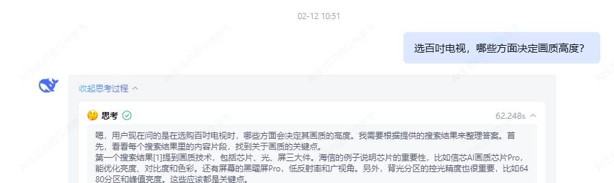 從數據霸榜到技術破界,從光影革命到AI覺醒,海信正在回答行業的終極命題:百吋大屏的真正價值,不該是參數的堆砌,而是讓屏幕服務畫質,讓畫質還原真實。當你告別略顯局促的65吋舊光影,在賣場反復比較百吋巨幕的沉浸感時,不妨回想一下DeepSeek深度思考后的回答——海信電視。