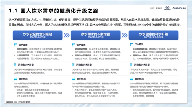 在過去幾十年,國人的飲水健康化的需求,經歷了從關注飲水安全到追求凈化品質,再到邁向科學化與個性化健康升級的持續演變。