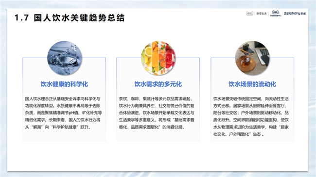 中國消費者的凈水需求正從單純的飲凈水轉向“飲+用”結合,凈水使用場景也進一步滲透日常生活,衍生出更多個性化的細分需求。與此同時,基礎的飲用凈水需求也呈現出多樣化和個性化的趨勢。