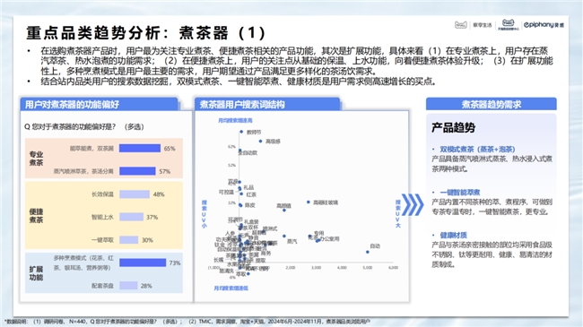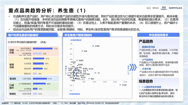 基于此,TMIC天貓新品創新中心聯合天貓家享生活和Epiphany靈感,攜手美的、蘇泊爾、九陽、飛利浦和小熊,共同發布《2025年度國人飲水電器白皮書》,通過調研消費者對于飲水的需求和痛點,并挖掘新的消費功能和場景。