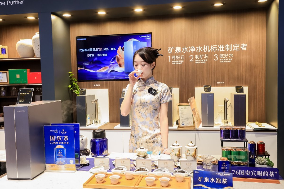 在3月20日的2025中國家電及消費電子博覽會上,卡薩帝帶來的「黃金礦泉」凈水機,在水中加入了黃金配比的8種礦物元素,將凈水機變成家庭“營養師”,讓每位家人都能喝上健康礦泉水。