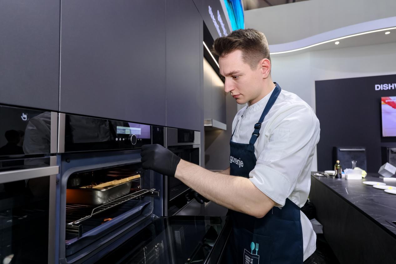 展會現場,琴聲悠揚,引得無數來賓駐足聆聽。藝術家電gorenje特邀設計師袁宗磊來到現場,感受藝術家電的溫度與美好,現場更有意大利星廚Milko以gorenje品牌成立75周年為靈感,烹飪專屬佳肴,帶人們感受美食與家電藝術交融的樂趣。