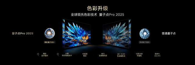 此外,TCL T7L Pro系列將XDR 1600nits升級為絢彩XDR 2200nits,TCL Q9L Pro系列將XDR 2400nits升級為絢彩XDR 4500nits,峰值亮度持續時間數倍延長,能夠更好地顯示真實世界的亮度效果。最新的量子點Pro 2025,則從量子點材料到色彩算法全面升維,讓顯示畫面更真實地還原現實世界,真正做到十億原色屏,十年好色彩。