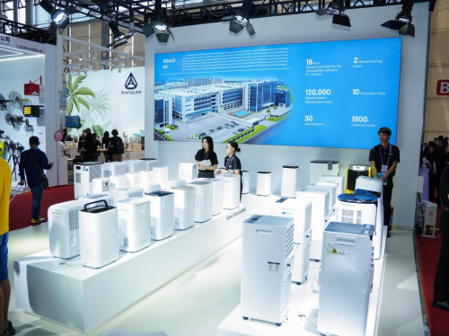 展位內,30余件除濕機、移動空調產品整齊陳列,令人目不暇接。這些產品不僅是科技與工藝的完美融合,更是百奧除濕為全球用戶量身打造的科技生活一體化解決方案,贏得了眾多外商的高度贊譽與認可。