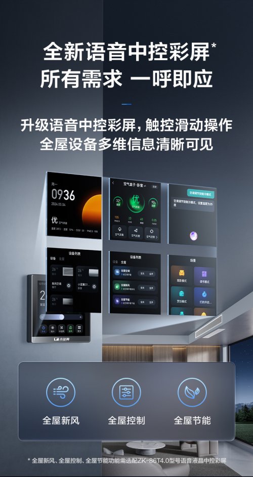 小藍翼P7新風風管機全新升級語音中控彩屏,多場景交互一呼即應
