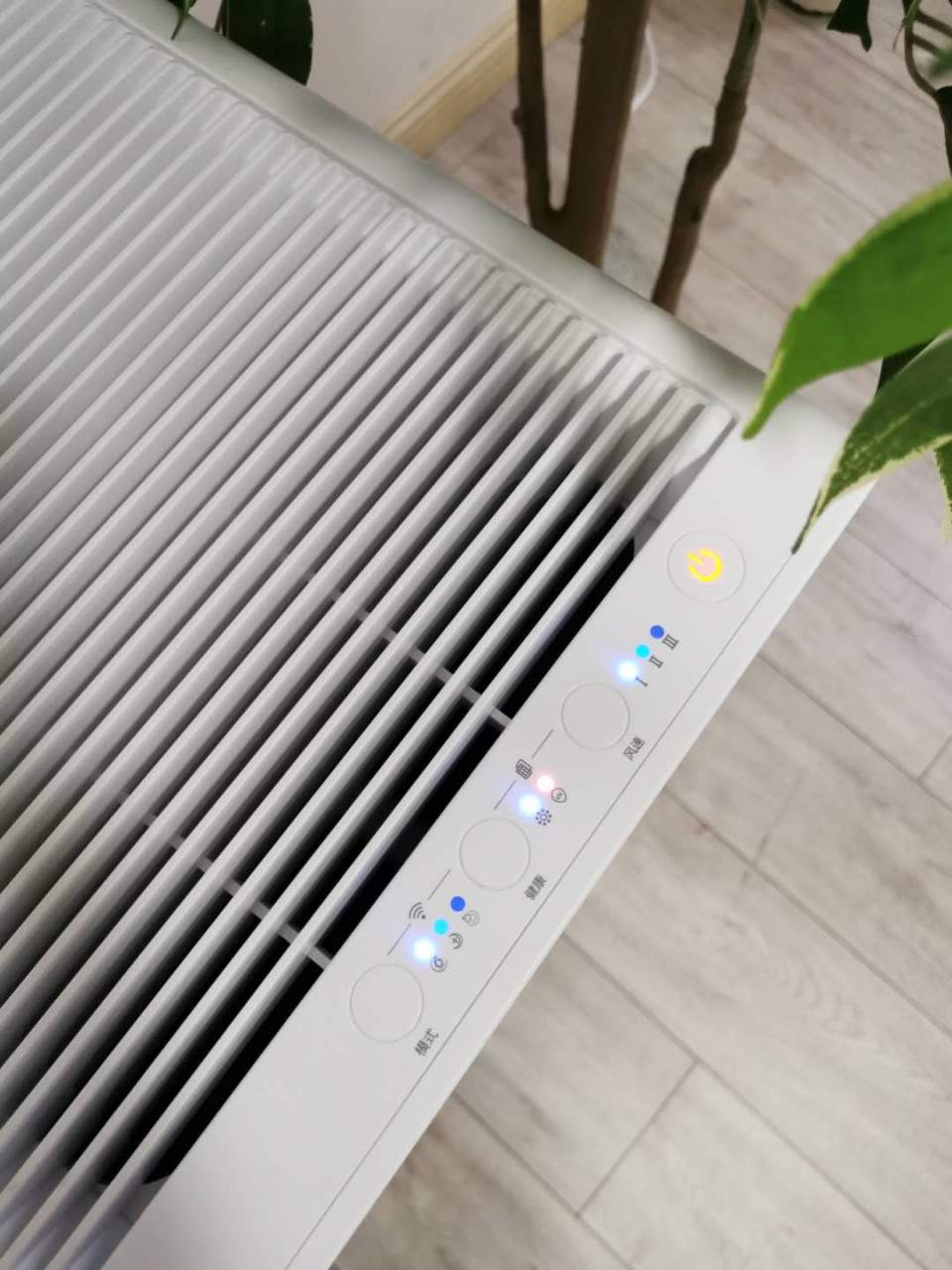 各功能按鍵分別是:模式功能選擇鍵,消費者可自由選擇智能模式、睡眠模式、急速凈煙模式;健康功能可自主切換負離子功能和UV殺菌功能;此外還有童鎖功能鍵、濾網復位功能鍵和風速調節功能鍵。