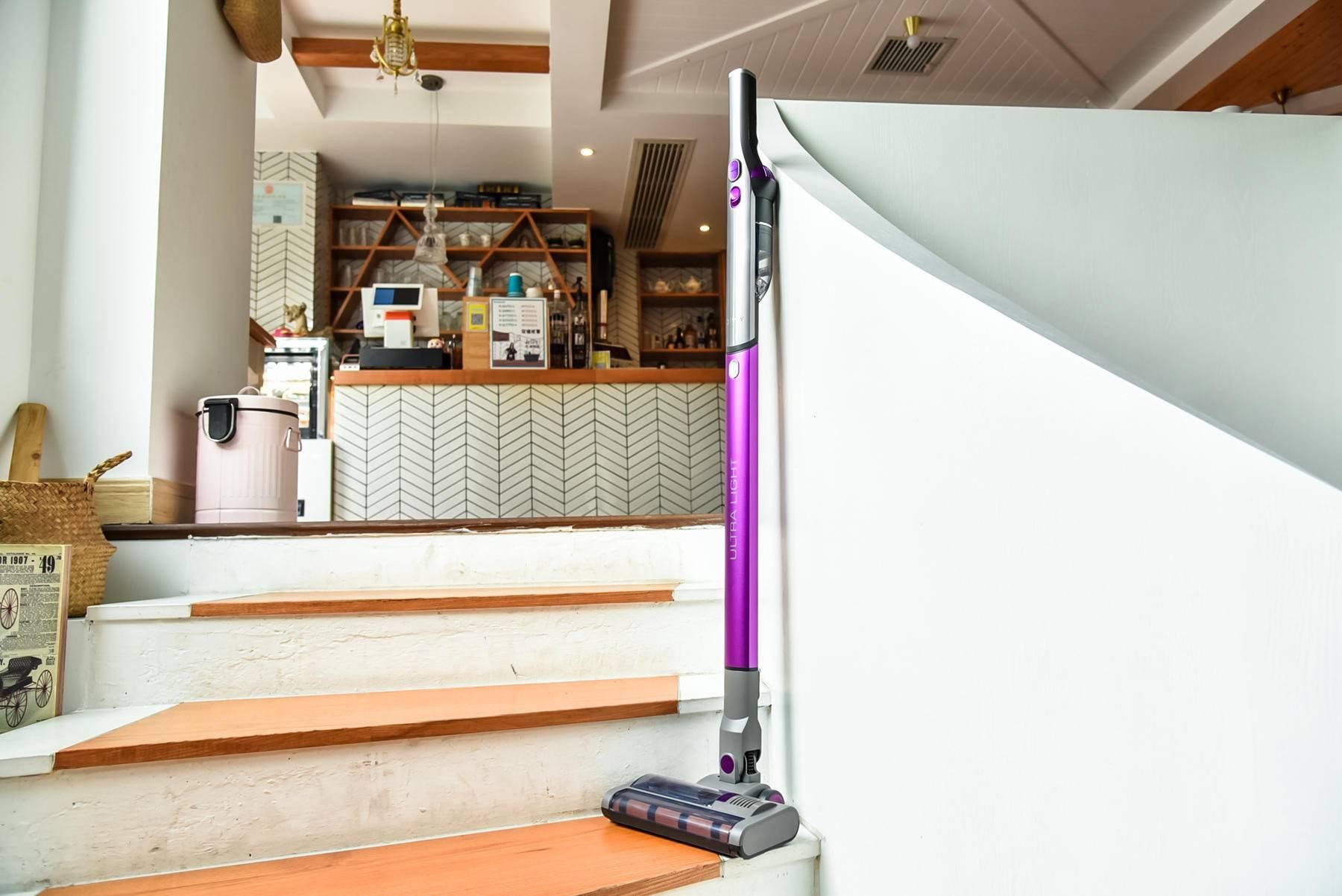 除此之外,吉米小輕桿還能直立停放,在吸塵過程中遇到接電話或是來客人開門的情況時,人們無需慌亂地找地方將機器放穩,只需要一鍵暫停,就能隨時隨地地停立在身邊,不費時不費力,讓人們從容地去做其他事情。