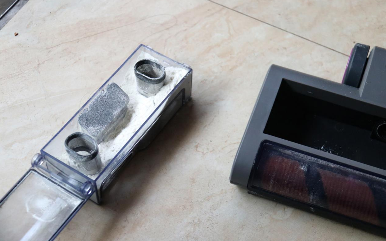 塵杯易滿,塵垢就會堵塞風道吸力下降,以往一次就能吸除干凈的效果,就需要反復清掃,依舊為家居清潔帶來負擔。吉米小輕桿擁有雙塵杯設計,手持主機與電動地刷上均帶有塵杯,更大的儲灰空間保證手持主機不易堵塞,能對地面上的大小顆粒、灰塵徹底快速吸入到塵杯中,吸力持久不衰退。
