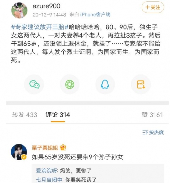 雖然這些都是網友開的玩笑,但從長遠角度來看,隨著三胎政策的逐漸放開,選擇生育第三胎的家庭內部人口數將發生變化,從三口、四口之家變成五口甚至更多人口的家庭。