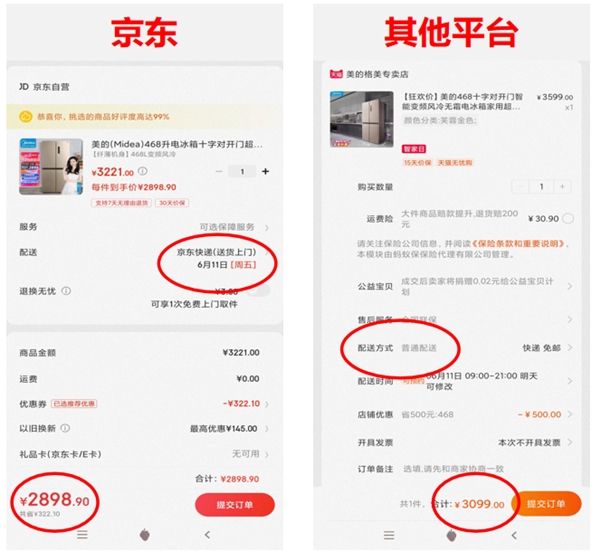 當然,購買家電產品,除了價格之外,物流和服務也是大家比較關心的。而說到這,就不得不感嘆京東又要凡爾賽了,在京準達、211限時達等服務的保障下,即使是冰箱、空調、熱水器這種大件,也能實現次日達。而且,京東618期間“買貴就賠價格保護30天”的服務也同樣覆蓋家電產品。無論你多少錢買的,30天內家電商品降價了立刻申請價格保護,徹底免去“買完就降價”的后顧之憂。