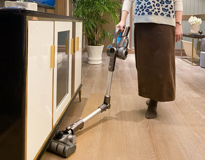 家具底部往往是灰塵的聚集地,如果沒來得及清掃,就會給地面形成一層灰塵“棉被”,不僅彎腰清潔時,手臂皮膚親觸到灰塵,即使是搬動家具也會造成揚塵的現象。對此,華為智選手持無線吸塵器,為了能讓家具底部的灰塵清掃更方便,做到經常清潔,采用了可彎折的金屬管設計,對于低矮的空間底部,在清潔時能直接彎折機身,進入到各個區域,輕松并快速地將灰塵都吸除掉,定期清潔不困難,保持全家潔凈更省心。