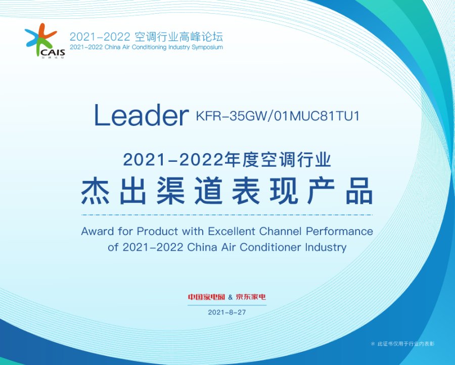 2022冷年剛剛開局,海爾智家旗下Leader空調就收到兩大專業肯定,在8月27日舉辦的“2021-2022年度中國空調行業高峰論壇”中連獲兩獎。其中,Leader空調斬獲“2021-2022年度中國空調行業年輕人優選品牌”,“明星單品”Leader旋翼耳機空調也一舉榮獲“2021-2022年度中國空調行業杰出渠道表現產品”。