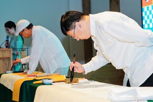 在活動(dòng)現(xiàn)場(chǎng),彭亮、解鵬二位老師還即興書(shū)法創(chuàng)作,各自留下墨寶,贈(zèng)予了華帝。