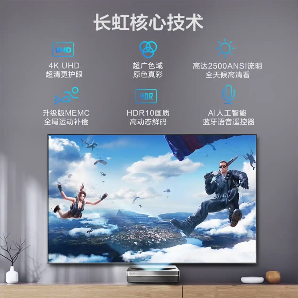 畫質方面,長虹激光電視D5UR亮度達到2500流明,搭配長虹菲涅爾光學屏幕,擁有多種亮度模式,能適應白天和晚上不同的播放環境;同時,它擁有4K分辨率,支持HDR10高動態解碼和MEMC運動補償,不止清晰,更流暢不拖影。